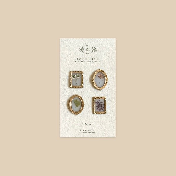 • Cada sello tiene forma de marco antiguo con un delicado toque dorado en los bordes, que realza los colores naturales de las flores y aporta un aire atemporal.