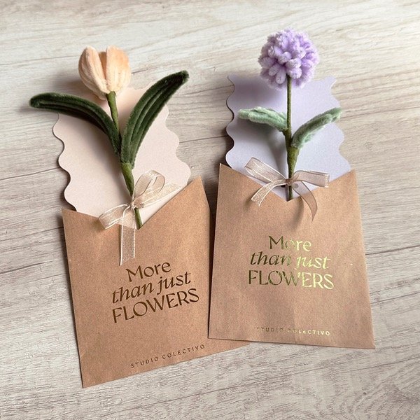 • Cada flor se entrega lista para regalar, presentada en un sobre individual con detalles en foil y un moño de cinta, cuidando cada terminación para que recibirla sea parte de la experiencia. Todas las piezas viajan perfectamente protegidas y embaladas para asegurar su llegada en óptimas condiciones. No puedo responsabilizarme por posibles daños ocasionados durante el traslado por el servicio de correo.